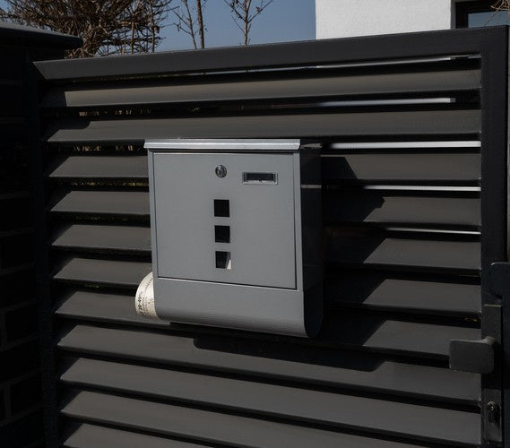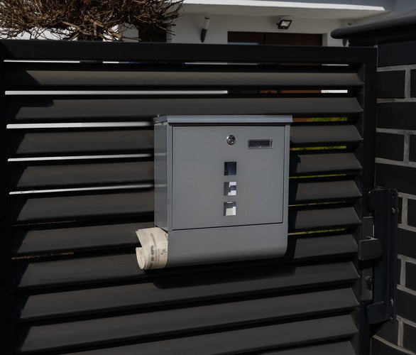 1 Briefkasten mit Zeitungsrohr, wetterfest, silber