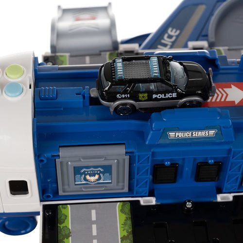 4 Polizeiautos und Polizeiflugzeug mit Interaktivität – blau