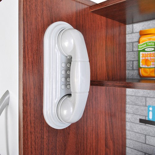 Holzküche mit Herd und Zubehör für sicheres Spielen, Braun/Weiß