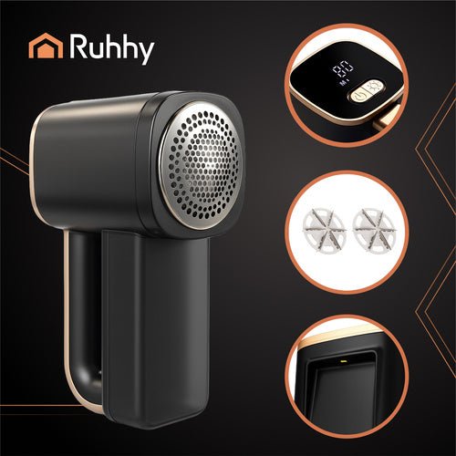 RUHHY Rasierer ist ein modernes, vielseitiges Gerät, mit dem Sie Ihre Kleidung und Heimtextilien stets in bestem Zustand halten können. dreistufige Geschwindigkeitsregulierung entfernt effektiv Pilling und Fasern aus Kleidung, Decken, Polstern und Vorhängen – ohne das Risiko einer Beschädigung des Materials. übersichtliches LCD-Display Und Integriertes LED-Licht , bietet volle Kontrolle und Präzision auch bei schwachem Licht. Es ist eine ausgezeichnete Wahl für diejenigen, die Wert Sauberkeit, Komfort und Liebe zum Detail in Ihrer Umgebung.