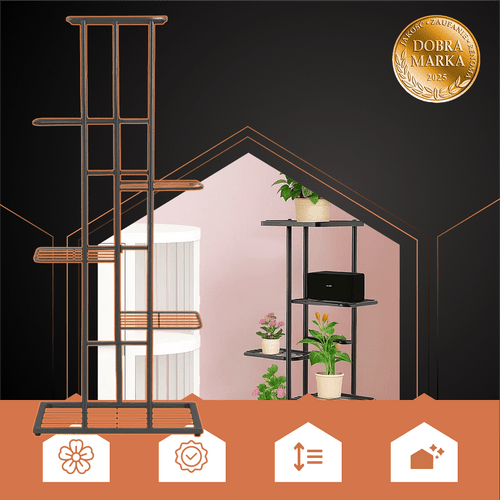 RUHHY hoher 6-stöckiger Blumenständer aus Metall im Loft-Stil – Harmonie, Ordnung und Natur, die das Interieur beruhigen