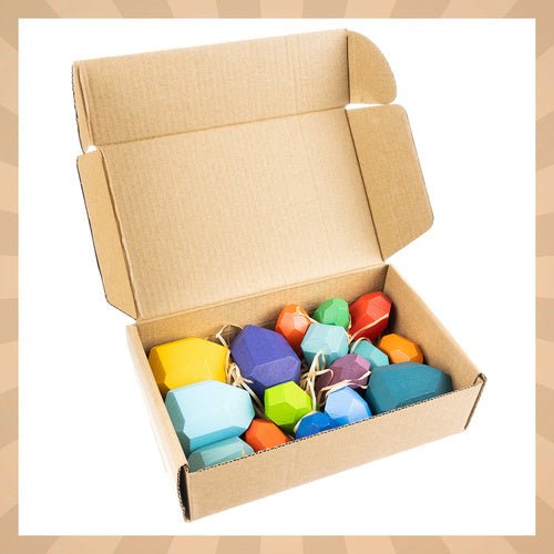 16 Holzbausteine für kreatives Spielen, mehrfarbig